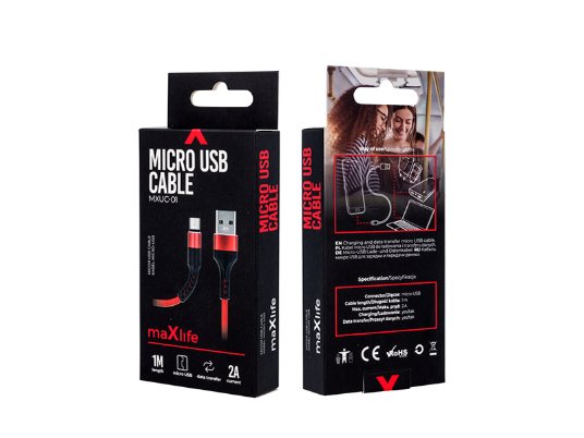 Maxlife kabl USB - micro USB, 1,0m, 2A, crveni za brzo punjenje