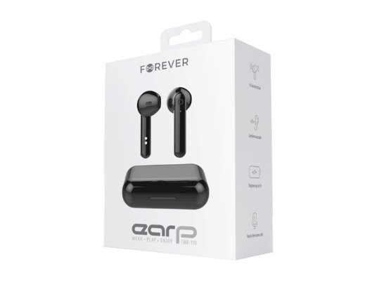 Forever TWE-110 Earp Bluetooth slušalice sa futrolom za punjenje. Slušalice TWS su savršeno rešenje za svakodnevnu upotrebu. Trenutna veza sa pametnim telefonom nakon vađenja iz futrole, besplatna kontrola poziva će osigurati da se necete rastajati sa njima. Slušalice i futrola imaju mat završnu obradu.