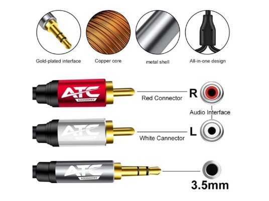 Konektor: pozlaćeni 3,5 mm stereo muški - 2x RCA muški