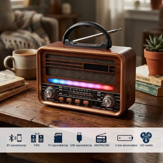 Prenosni retro RGB Bluetooth radio 7068BT/B